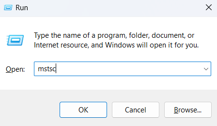 به طور جایگزین, برای باز کردن پنجره Run، کلیدهای Win + R را فشار دهید، mstsc را تایپ کنید و Enter را بزنید تا اتصال از راه دور به دسکتاپ (Remote Desktop Connection) باز شود. window.